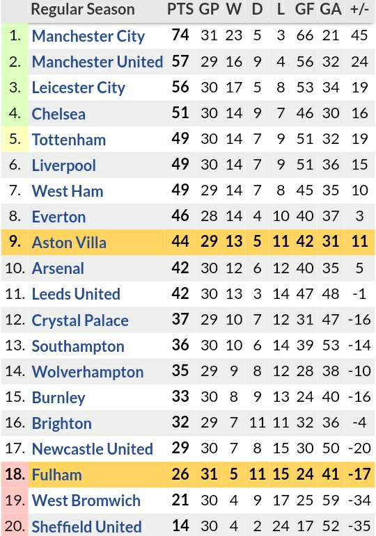 Aston Villa - 1 May 2021 - Soccerway. W L D W W. L W D L L.